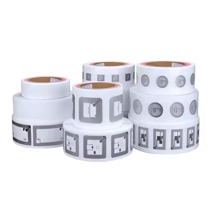 RFID Wet Inlay는 RFID 태그의 핵심 구성 요소로, 접착제가 포함된 얇은 필름 형태로 제공되어 다양한 표면에 손쉽게 부착할 수 있는 형태입니다. 이 제품은 칩과 안테나가 PET 필름 위에 부착된 후, 특수 점착제로 라미네이팅 처리되어 생산되며, 보통 롤 형태로 공급됩니다. 제조 과정에서는 고정밀 안테나 패턴을 알루미늄 에칭 또는 도전성 잉크 프린팅 방식으로 구현하며, 후속 공정에서 RFID 칩이 정확하게 부착되고 테스트를 거쳐 불량을 선별합니다.